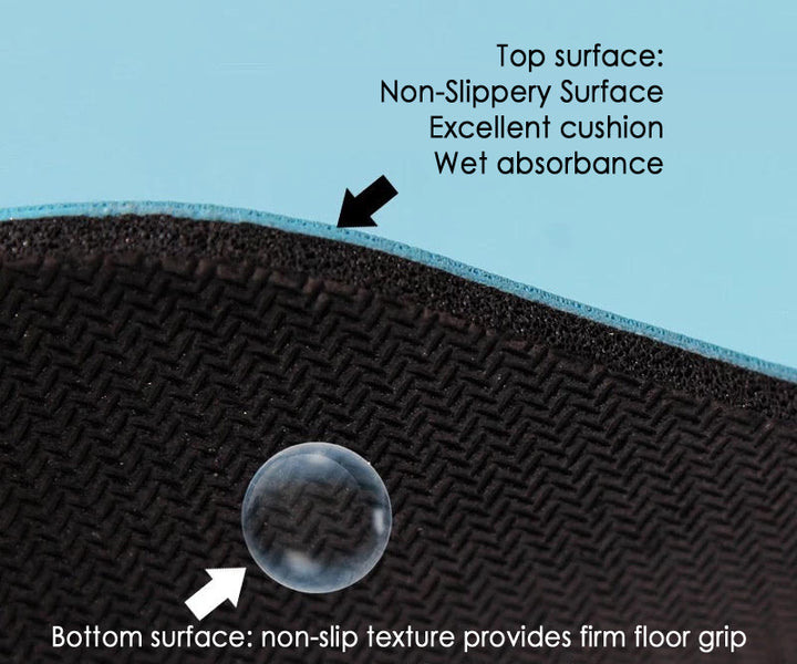 - Durable Rubber Base + Innovative Skin Friendly, Non-Slippery Surface design provide excellent cushion and wet absorbance experience and double-sided non-slip texture provides firm floor grip on versatile surface (carpet, cement, hardwood floors).